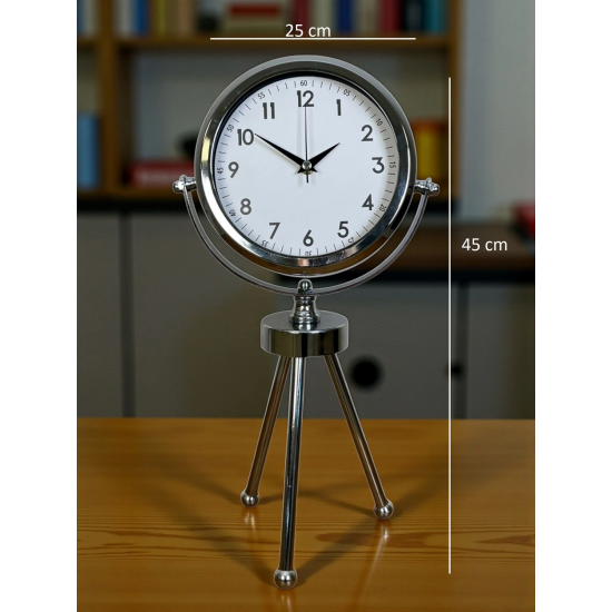 Mey İthalat® Krom Modern Classic Üç Ayaklı Metal Masa Saati