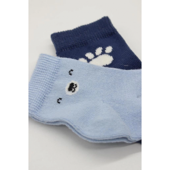 Mey İthalat® 2'Li Bear Penye Soket Çorap 10116 Mavi
