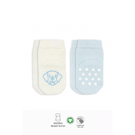 Mey İthalat® 2'Li Hayvan Figürlü Kaymaz Soket Çorap 10104 Mavi Ekru