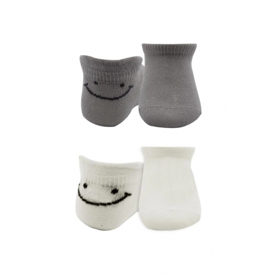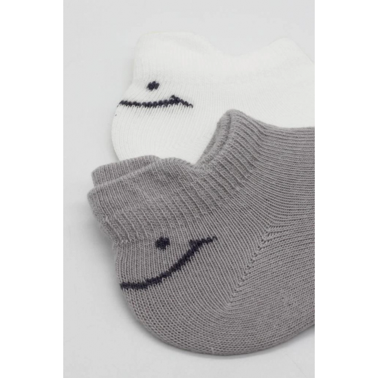 Mey İthalat® 2'Li Sneakers Smile Penye Çorap 20106 Gri Ekru