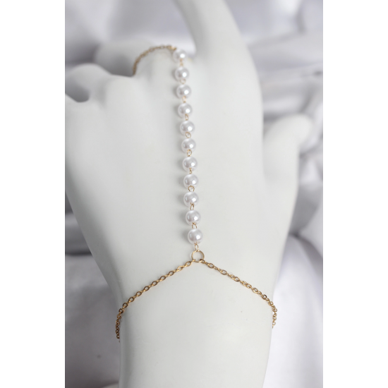 Mey İthalat® 316L Çelik Gold Renk Sıralı İncili Model Kadın Şahmeran