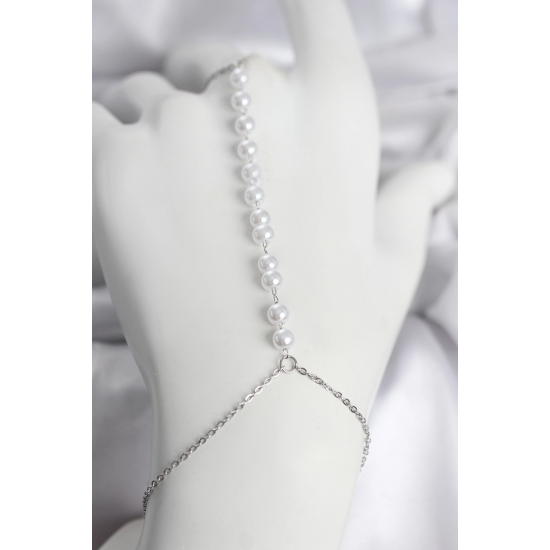 Mey İthalat® 316L Çelik Gümüş Renk Sıralı İncili Model Kadın Şahmeran