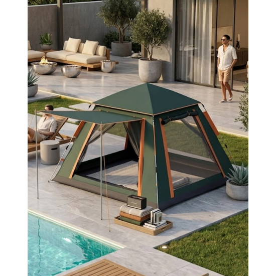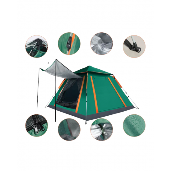 Doğada geniş ve konforlu bir alan sunan bu kamp çadırı, pratik kullanımı ve dayanıklı yapısı ile dikkat çeker. Geniş iç hacmi sayesinde birden fazla kişinin rahatlıkla konaklayabileceği bir alan sunar.Güneşlikli tasarımı sayesinde dış mekanda ekstra alan sağlar. Otomatik kurulum sistemi sayesinde kolay kullanım sunar.Su geçirmez yapısı sayesinde yağmur ve nemden korur. Hava sirkülasyonu sağlayan yapısı ile ferah bir ortam sunar.Taşınabilir yapısı sayesinde her yere kolayca götürülebilir.