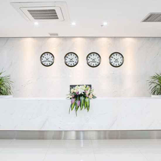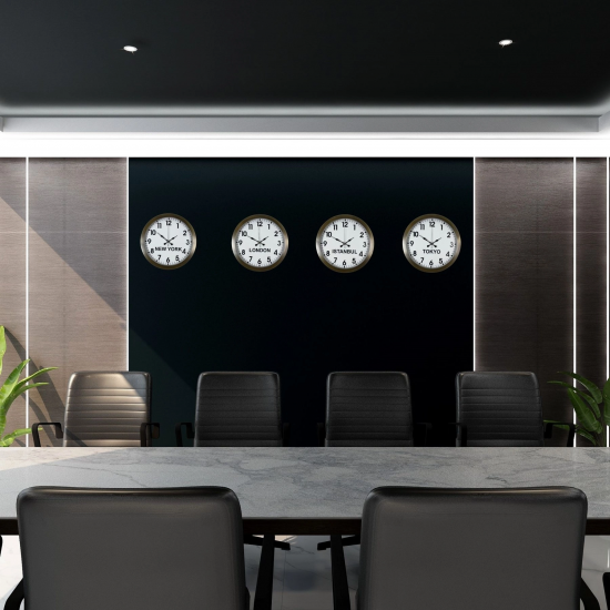 Set içerisinde yer alan New York, London, İstanbul ve Tokyo saatleri ile dünyanın önemli şehirlerinin saatlerini aynı anda takip edebilir, özellikle uluslararası çalışan işletmelerde büyük kolaylık sağlayabilirsiniz. Bu özelliği ile ürün; otel resepsiyonları, ofisler, ajanslar ve kurumsal alanlar için ideal bir çözümdür.