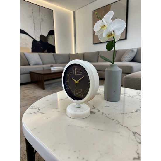 Mey İthalat® Aura White 25 x 20 Cm Metal Masa Saati