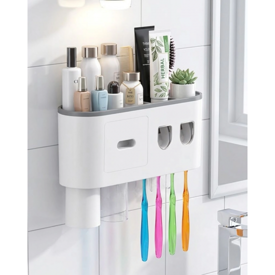Banyo organizer diş fırçası tutucu, düzenli ve hijyenik bir banyo ortamı oluşturmak için geliştirilmiştir. Çift diş macunu dispenseri sayesinde farklı diş macunlarını aynı anda kullanabilirsiniz. Otomatik sistem, diş macununun kontrollü şekilde sıkılmasını sağlar.Ters bardak sistemi, hijyenik kullanım sunar. 6 fırçalık kapasitesi ile aile kullanımı için idealdir. Geniş raf ve çekmece alanı sayesinde birçok ürünü düzenli şekilde saklayabilirsiniz.Dayanıklı malzemesi sayesinde uzun süreli kullanım sağlar. Modern ve şık tasarımı ile dikkat çeker.