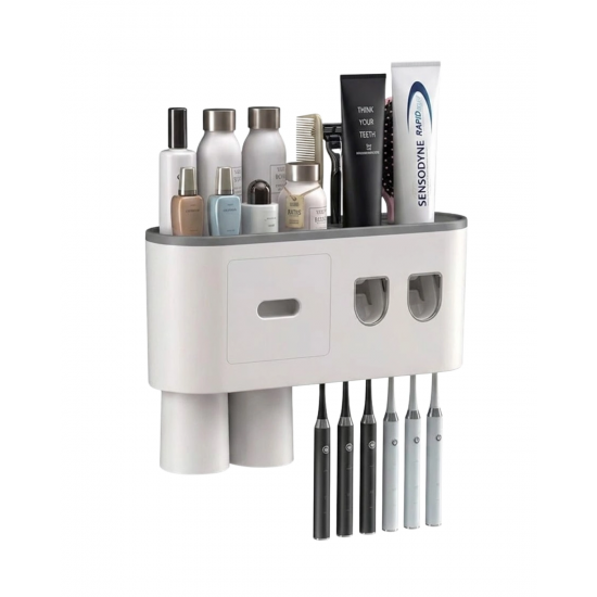Mey İthalat® Banyo Organizer Diş Fırçası Tutucu Çift Dispenserli Raflı Çekmeceli