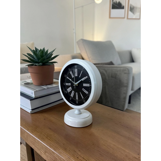 Mey İthalat® Beyaz Kontrast Tasarım 25 x 20 Cm Metal Masa Saati