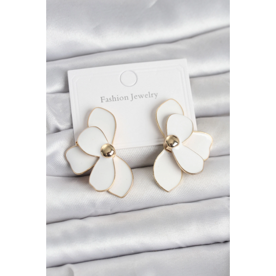 Mey İthalat® Beyaz Mineli Lotus Model Pirinç Kadın Küpe