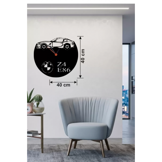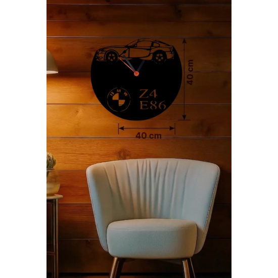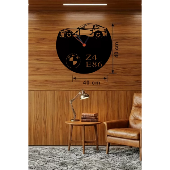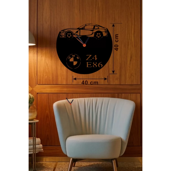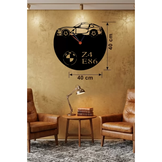Mey İthalat® BMW Z4 E86 Tasarım Ahşap Duvar Saati - 40x40 cm Lazer Kesim Dekoratif