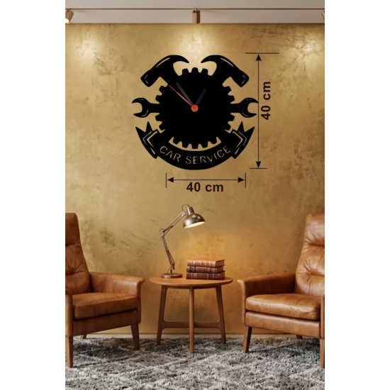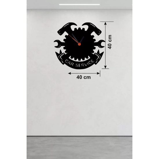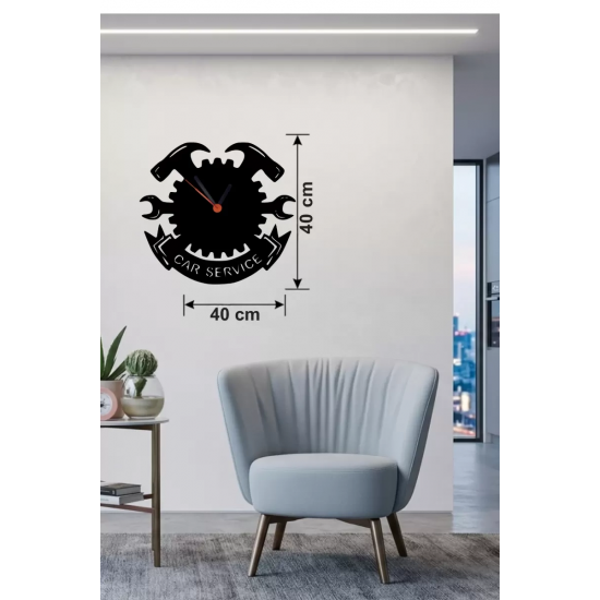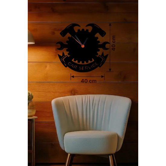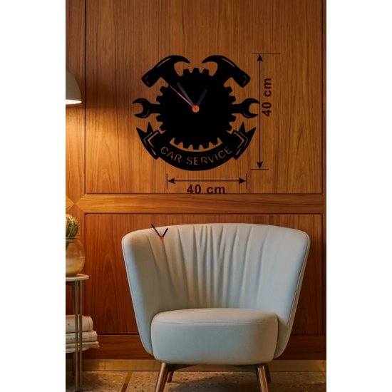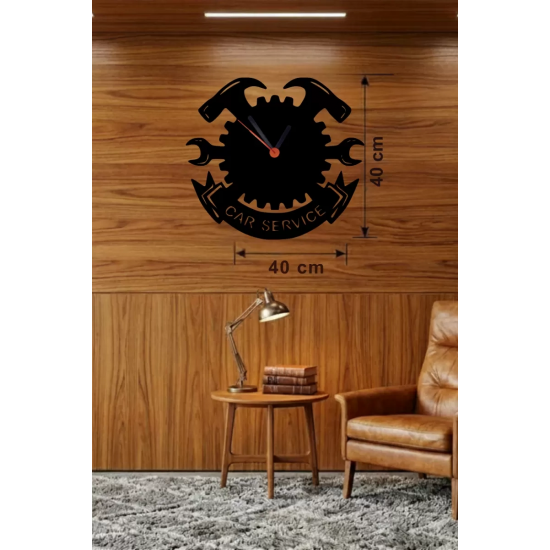 Mey İthalat® Car Service Temalı Ahşap Duvar Saati - 40x40 cm Teknik Servis Dekoru
