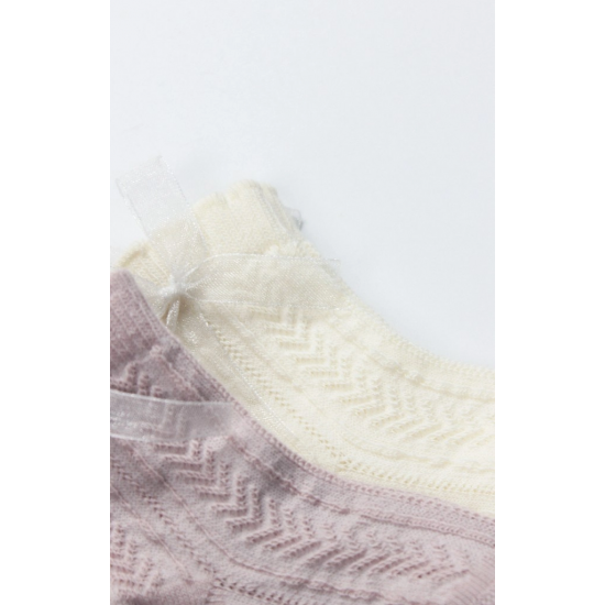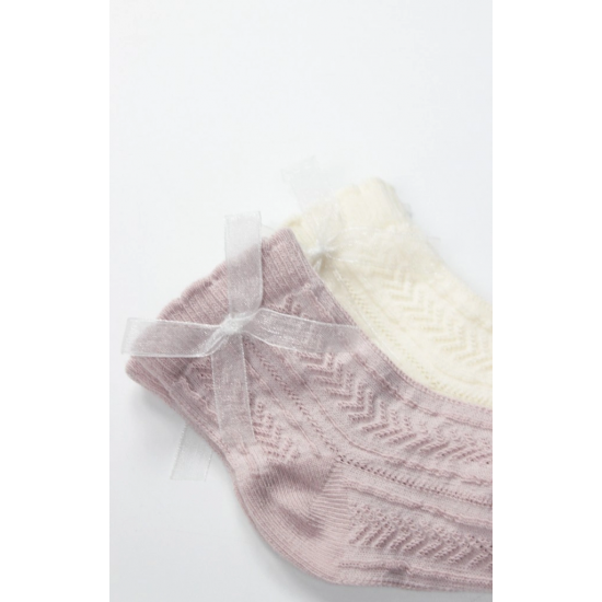 Mey İthalat® Fiyonklu Penye Soket Çorap 2li 10149 Lila