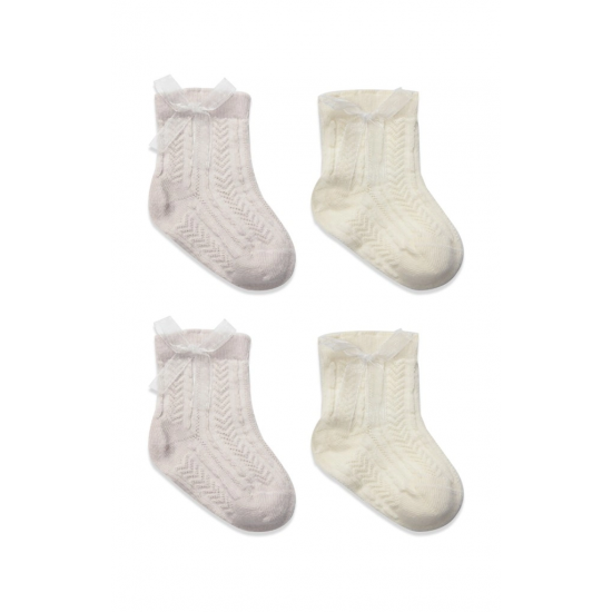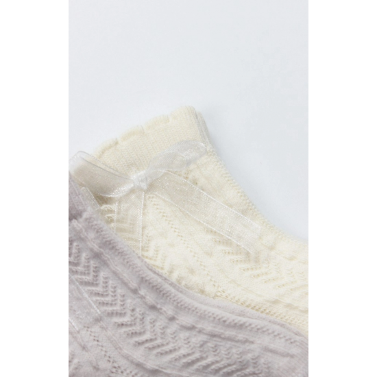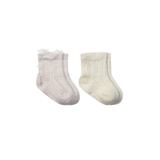 Mey İthalat® Fiyonklu Penye Soket Çorap 2li 10149 Taş