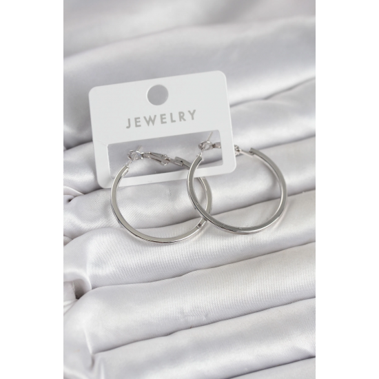 Mey İthalat® Gümüş Renk Pirinç Köşeli Kenar Halka 32 mm Kadın Küpe