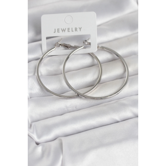 Mey İthalat® Gümüş Renk Pirinç Köşeli Kenar Halka 54 mm Kadın Küpe