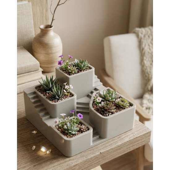 Fonksiyonel ve estetik tasarımıyla öne çıkan 3D baskı masaüstü kaktüs saksı organizer, yaşam alanlarınızda düzen ve şıklığı bir araya getirir. Çoklu bölmeli yapısı sayesinde farklı bitkileri tek bir platformda sergilemenizi sağlar.Minimal tasarımı sayesinde her dekorasyon stiline uyum sağlar. Özellikle modern ve sade tasarımları seven kullanıcılar için ideal bir üründür. Çalışma alanlarında kullanıldığında motivasyonu artırır ve doğal bir atmosfer oluşturur.3D baskı teknolojisi ile üretilmiş olan ürün, dayanıklılığı ve hafifliği ile dikkat çeker. Katmanlı yüzey dokusu ürüne farklı bir karakter kazandırır. Uzun süreli kullanım için uygundur.Bitkilerinizin düzenli görünmesini sağlar ve bakım sürecini kolaylaştırır. Kompakt yapısı sayesinde dar alanlarda bile rahatlıkla kullanılabilir. Dekoratif ve işlevsel bir çözüm sunar.