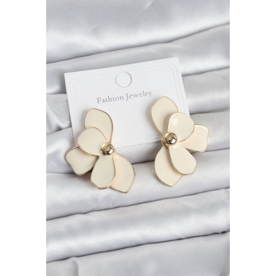 Mey İthalat® Krem Mineli Lotus Model Pirinç Kadın Küpe