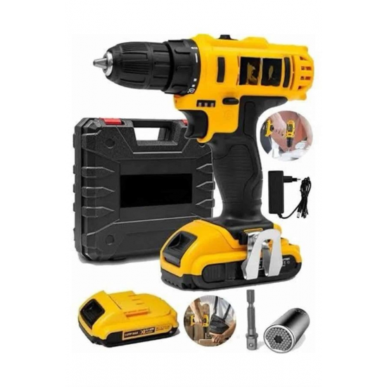 Mey İthalat® Metal Şanzıman Çift Akülü Bakır Sargı 24 Parça Led Aydınlatmalı Matkap Seti