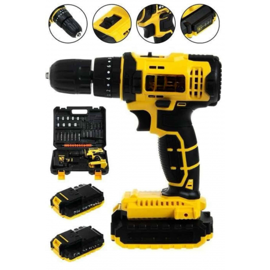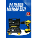 Mey İthalat® Metal Şanzıman Çift Akülü Bakır Sargı 24 Parça Led Aydınlatmalı Matkap Seti