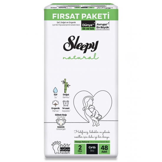 Mey İthalat® Natural Bebek Bezi Fırsat Paketi 2 Beden 3-6 Kg 48 Adet