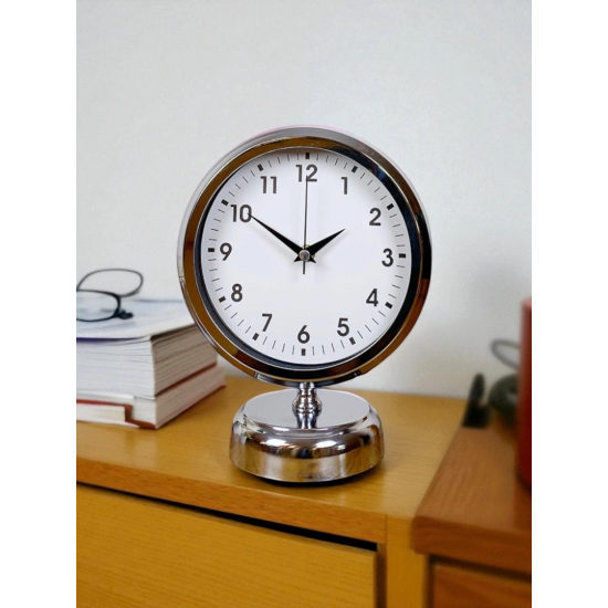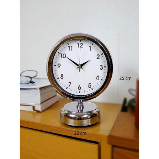 Mey İthalat® Noble Time 25 x 20 Cm Metal Krom Masa Saati