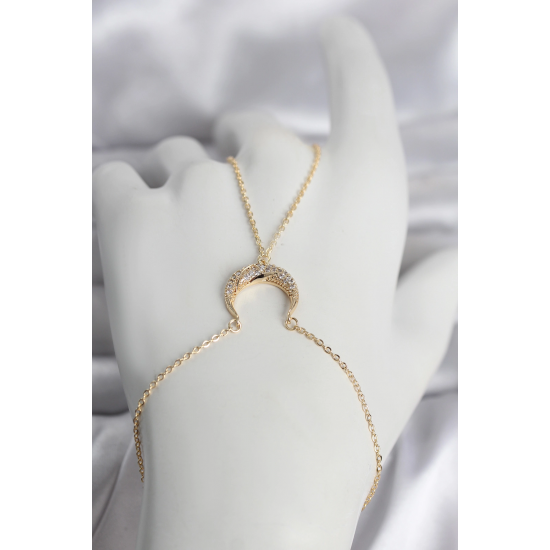 Mey İthalat® Pirinç Gold Renk Hilal Model Zirkon Taşlı Kadın Şahmeran