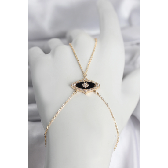 Mey İthalat® Pirinç Göz Model Gold Renk Zirkon Taşlı Kadın Şahmeran
