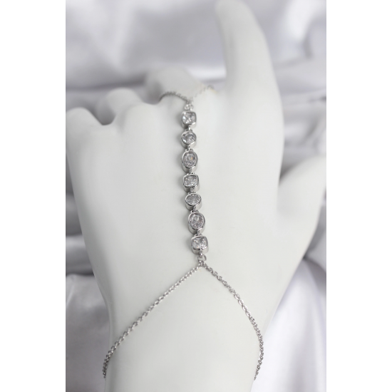 Mey İthalat® Pirinç Gümüş Renk Sıralı Zirkon Taşlı Kadın Şahmeran