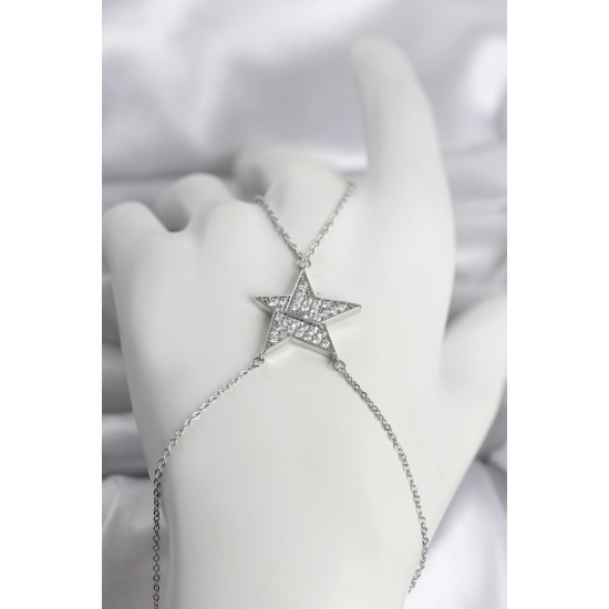 Mey İthalat® Pirinç Gümüş Renk Zirkon Taşlı Yıldız Model Kadın Şahmeran