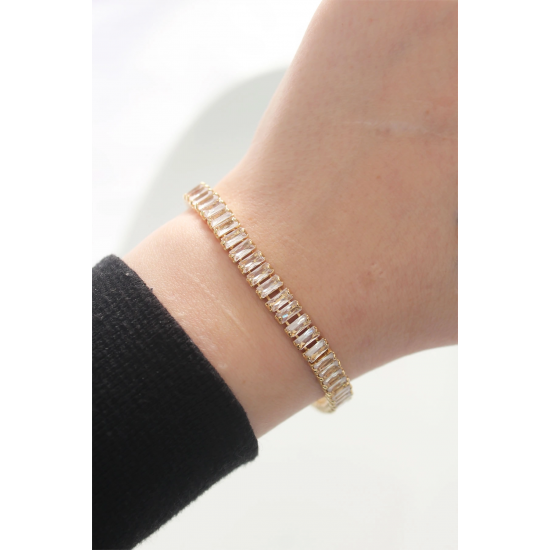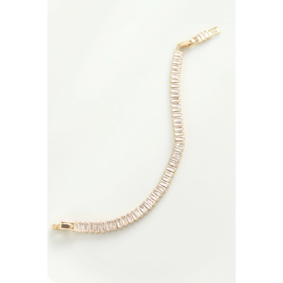 Mey İthalat® Pirinç Zirkon Taşlı Gold Renk Su Yolu Bileklik