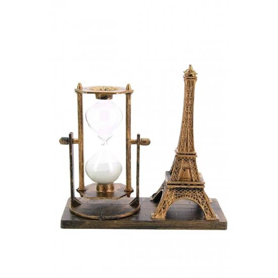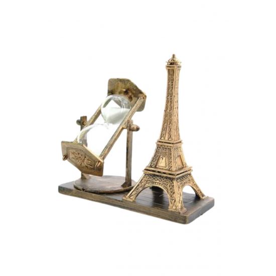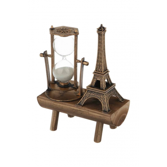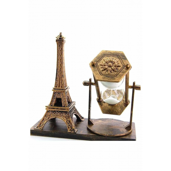 Mey İthalat® Retro Eyfel Kulesi Ve Kum Saati Dekoratif Ahşap Görünümlü Masa Biblosu