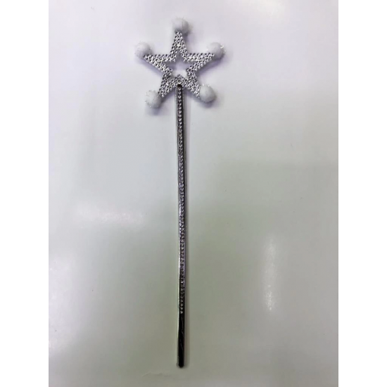 Mey İthalat® Yıldız Peri Asası Sihirli Değnek Beyaz Ponponlu