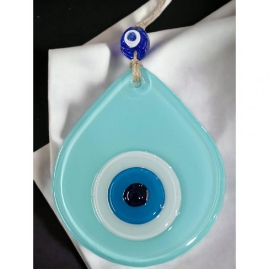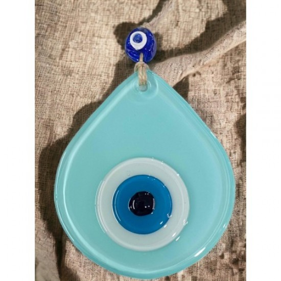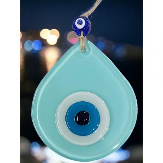 Orta Boy Turkuaz Damla Desen Nazar Boncuklu Duvar Dekoru Cam Duvar Süsü