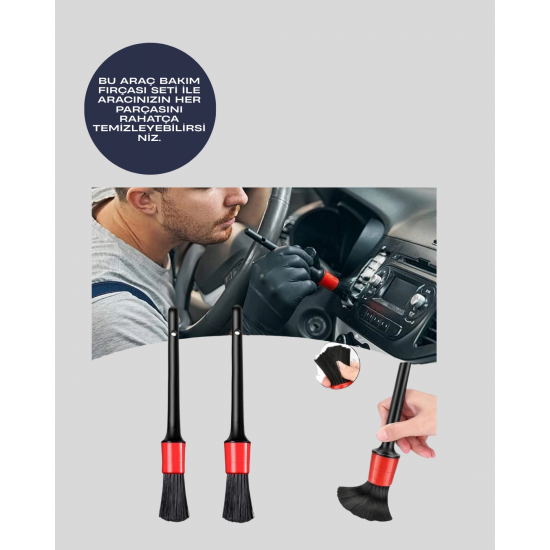 Mey İthalat® 5 Boy Fırçalı Araba Temizlik Seti-Derin Temizlik Sağlayan Yumuşak Fırçalar