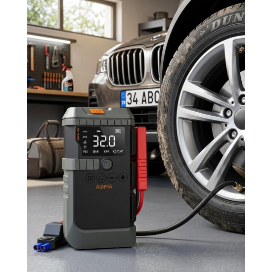 Araç kullanıcılarının en çok karşılaştığı sorunlardan biri beklenmedik akü bitmesi veya lastik basıncının düşmesidir. Bu çok fonksiyonlu taşınabilir araç cihazı, bu tür durumlar için pratik ve güvenilir bir çözüm sunar. Akü takviye özelliği, hava kompresörü, powerbank ve LED aydınlatma gibi birçok fonksiyonu tek bir kompakt cihazda bir araya getirerek sürücülere büyük kolaylık sağlar.Cihazın güçlü akü takviye özelliği sayesinde aracınızın aküsü tamamen bitmiş olsa bile aracınızı kısa sürede çalıştırabilirsiniz. Güçlü başlangıç akımı sayesinde araç motoruna gerekli enerjiyi sağlayarak hızlı bir şekilde çalışmasını sağlar. Akıllı güvenlik sistemi ise ters bağlantı, aşırı akım, kısa devre ve aşırı ısınma gibi risklere karşı koruma sunar. Bu sayede hem güvenli hem de pratik bir kullanım elde edersiniz.Ürünün dijital ekranlı hava kompresörü, lastik basıncını kontrol etmek ve ayarlamak için oldukça kullanışlıdır. Araç lastikleri için doğru basınç değerini ayarlamak sürüş güvenliği açısından oldukça önemlidir. Dijital ekran üzerinden basınç değerini kolayca görebilir ve istediğiniz seviyeye ulaşana kadar lastik şişirme işlemini sürdürebilirsiniz.Cihaz sadece araç lastikleri için değil, aynı zamanda motosiklet lastikleri, bisiklet lastikleri, spor topları ve şişme ürünler için de kullanılabilir. Farklı başlık aparatları sayesinde geniş bir kullanım alanı sunar.USB çıkış portları sayesinde cihaz aynı zamanda taşınabilir bir güç bankası görevi görür. Telefon, tablet veya diğer elektronik cihazlarınızı kolaylıkla şarj edebilirsiniz. Bu özellik özellikle uzun yolculuklarda ve kamp aktivitelerinde büyük avantaj sağlar.LED aydınlatma özelliği ise gece kullanımında büyük kolaylık sağlar. Araç bakım işlemleri sırasında veya karanlık ortamlarda güçlü ışık ile çevrenizi aydınlatabilirsiniz. SOS ışık modu acil durumlarda dikkat çekmek için kullanılabilir.Dayanıklı yapısı ve taşınabilir tasarımı ile bu çok amaçlı cihaz, araç sahipleri için vazgeçilmez bir yol yardım ekipmanı haline gelir.