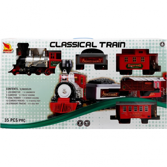 Mey İthalat® Klasik Tren Seti Sesli ve Işıklı 35 Parça
