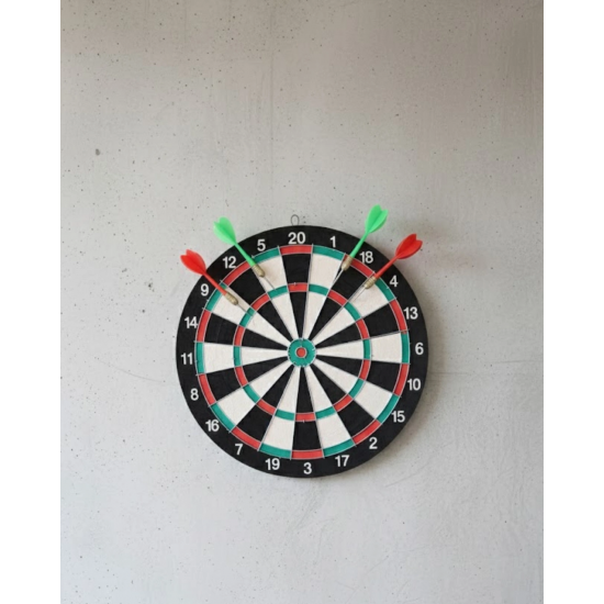 17 inç dart tahtası seti, evinizde, ofisinizde ya da sosyal alanlarda eğlenceyi ve rekabeti bir araya getirmek isteyenler için özel olarak tasarlanmıştır. Geniş oyun alanı sunan 17 inçlik ölçüsü sayesinde atışlarınızı daha rahat yapabilir, oyunun keyfini tam anlamıyla yaşayabilirsiniz. Dengeli yüzey yapısı ve net numaralandırması sayesinde hedef alma süreci son derece akıcı ve keyiflidir. Bu dart tahtası, hem yeni başlayanlar hem de deneyimli oyuncular için ideal bir oyun deneyimi sunar.Ürün, uzun süreli kullanım düşünülerek kaliteli ahşap malzemeden üretilmiştir. Sağlam yapısı sayesinde darbelere karşı dayanıklıdır ve formunu uzun süre korur. Oyun sırasında dart oklarının tahtaya rahatça tutunmasını sağlayan yüzey dokusu, performansınızı artırırken aynı zamanda tahtanın ömrünü de uzatır. Estetik görünümü ile bulunduğu ortama şık bir hava katar ve dekoratif bir ürün olarak da dikkat çeker.Set içerisinde yer alan 4 adet dart oku, metal iğne uçlu yapısıyla isabetli atışlar yapmanıza yardımcı olur. Dart oklarının dengeli ağırlık dağılımı sayesinde atış kontrolü kolaylaşır ve oyun daha keyifli hale gelir. Metal uçlu dart okları, hedefe sağlam bir şekilde tutunur ve oyun esnasında güvenli bir kullanım sağlar.Kolay montaj özelliği sayesinde dart tahtasını kısa sürede kullanıma hazır hale getirebilirsiniz. Askı aparatı ile duvara pratik bir şekilde asılabilir ve ekstra ekipmana ihtiyaç duyulmaz. Evde keyifli vakit geçirmek, arkadaşlarla rekabet dolu anlar yaşamak veya stres atmak için mükemmel bir seçenektir.17 inç dart tahtası seti, eğlenceyi kaliteyle birleştiren yapısı sayesinde her yaştan kullanıcıya hitap eder. Oyun becerilerinizi geliştirirken aynı zamanda keyifli anılar biriktirmenizi sağlar. Dayanıklı yapısı, şık tasarımı ve kullanışlı özellikleriyle bu dart tahtası, oyun severlerin vazgeçilmezi olmaya adaydır.