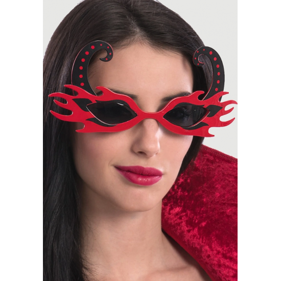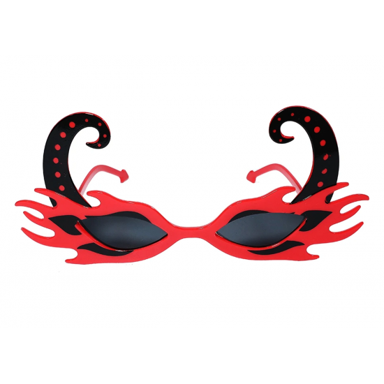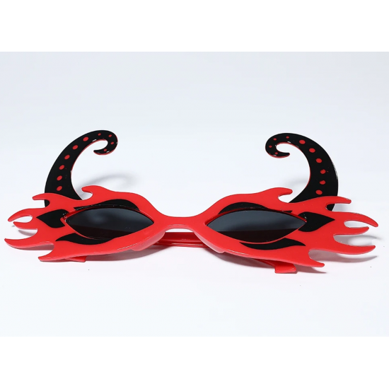 Mey İthalat® Siyah Boynuzlu Kırmızı Renk Alevli Parti Gözlüğü 21x10 cm