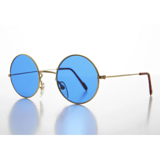 Mey İthalat® Yuvarlak Cam John Lennon Tarzı Gold Çerçeveli Mavi Gözlük