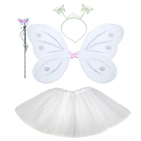 Mey İthalat® Beyaz Kelebek Kostümü - Beyaz Kelebek Kostüm Aksesuar Seti 4 Parça