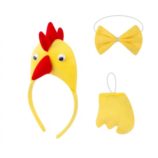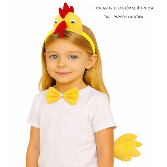 Mey İthalat® Çocuk Horoz Tavuk Kostüm Seti 3 Parça (Taç + Papyon + Kuyruk)