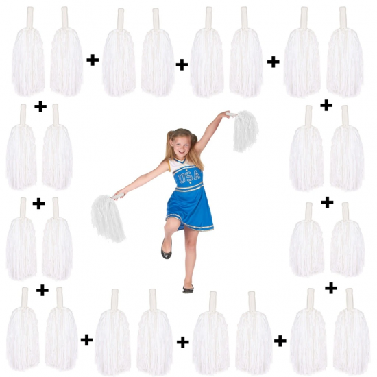 Mey İthalat® 12 Çift ( 24 Adet ) Beyaz Renk 23 Nisan 19 Mayıs 29 Ekim Okul Gösteri Ponponları