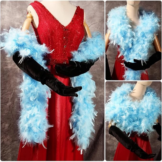 Mey İthalat® Açık Mavi Renk Kabarık Kalın Otriş Boa Tüy 6 cm Genişlik 180-200 cm Uzunluk