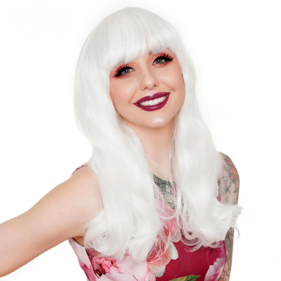 Mey İthalat® Beyaz Renk Kahküllü Dalgalı Uzun Parti Peruğu