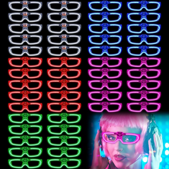 Mey İthalat® Glow Model 3 Farklı Fonksiyonlu Işıklı Parti Gözlüğü Karışık Renk 12 Adet