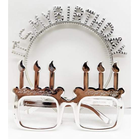 Mey İthalat® İt's My Birthday Yazılı Taç ve Mum Şekilli Gözlük Seti Gümüş Renk