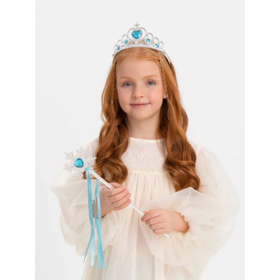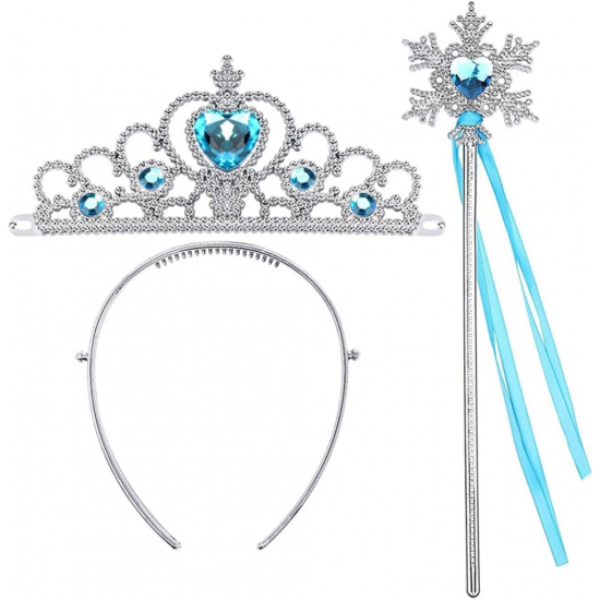 Mey İthalat® Mavi Kalp Tacı ve Kar Temalı Asa Seti