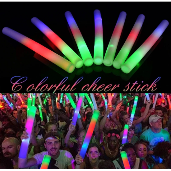 Mey İthalat® Led Işıklı Rengarenk Sünger Parti Çubuk Işıklı Kauçuk Sopa 46 cm