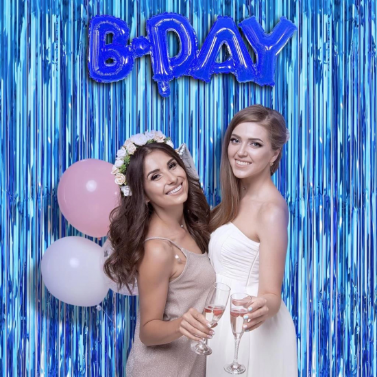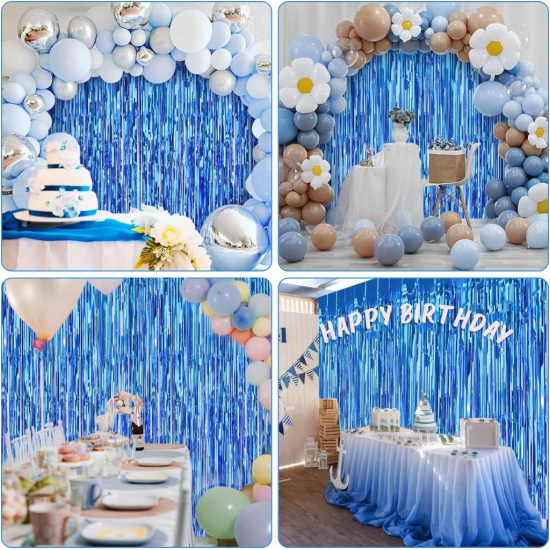 Mey İthalat® Mavi Renk Ekstra Metalize Parlak Saçaklı Arka Fon Perde İthal 1x2 Metre