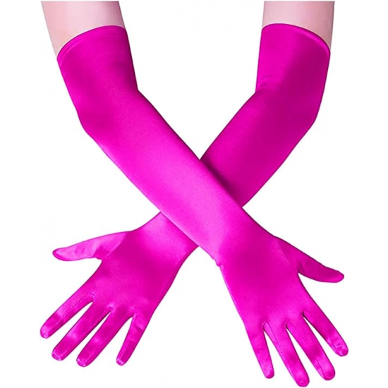 Mey İthalat® Uzun Boy Ekstra Parlak Saten Eldiven Fuşya Renk